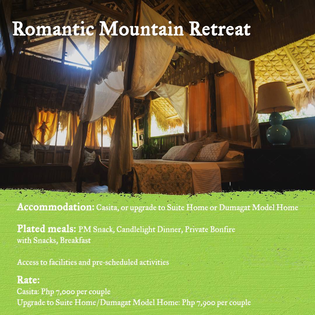 – Access to pre-scheduled activities such as forest hikes, river walks, Dumagat tribe interactions, and bonfires