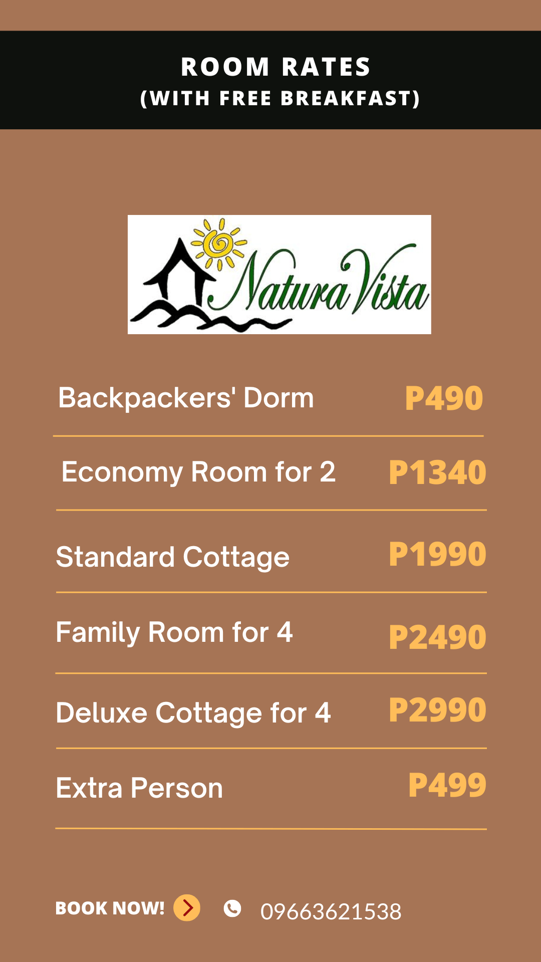 Natura Vista invites you to experience the charm and tranquility of Panglao, Bohol. With our personalized service, comfortable accommodations, and a range of amenities, your staycation will be a rejuvenating and memorable experience. Escape the hustle and bustle of daily life and immerse yourself in the natural wonders that surround our idyllic retreat.