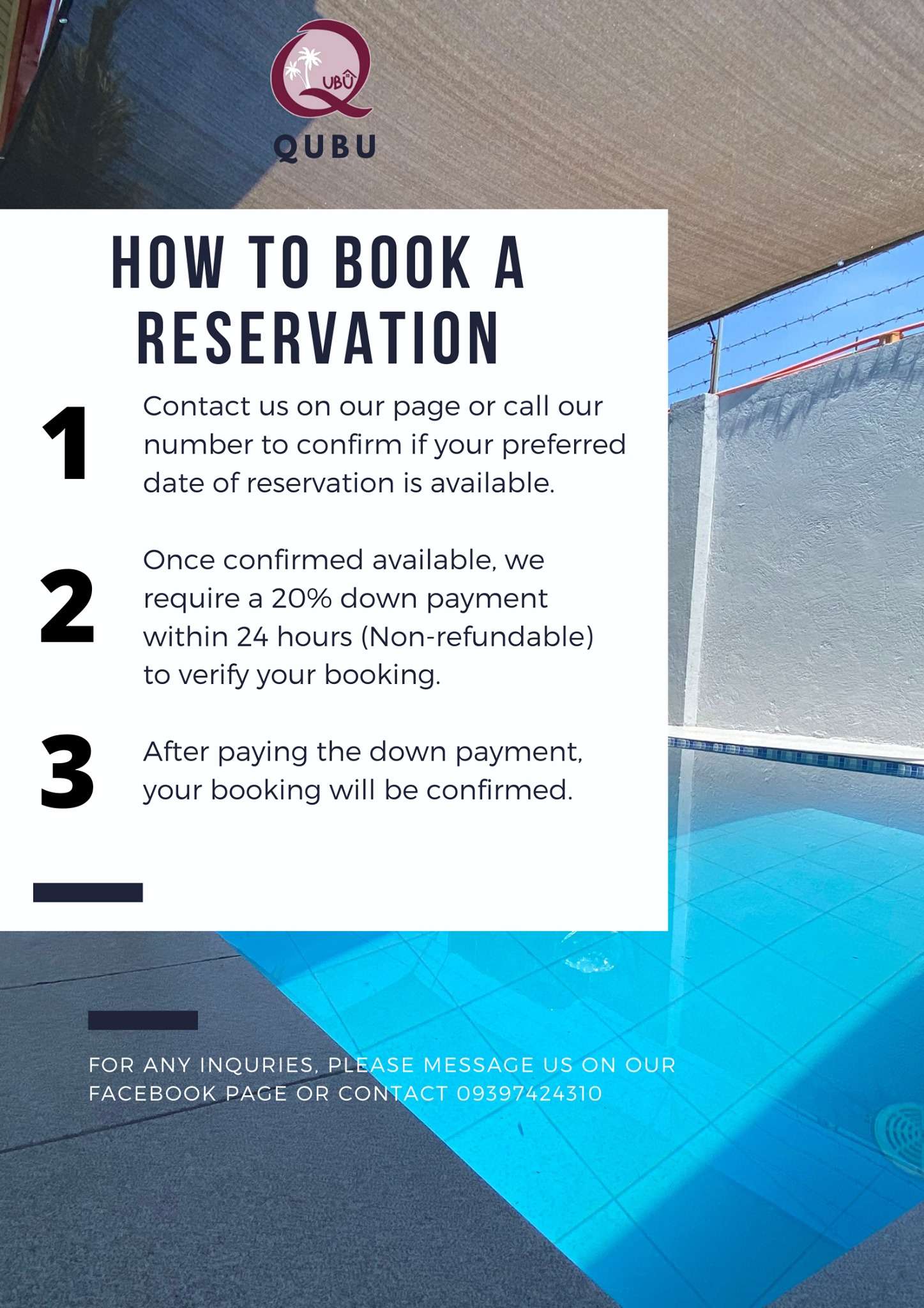 QUBU guarantees an unforgettable vacation with its exclusive swimming pool, comfortable dining space, and deluxe facilities that will create memories to last a lifetime.